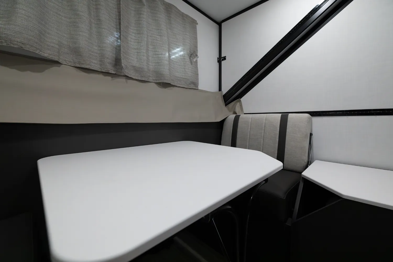 The Flagstaff Hard Side T21HS delivers smart comfort in a compact design. A front dormer provides increased head height above the front dinette, which easily converts to sleeping space. Inside you’ll find a convenient wet bath, cooktop, and sink, while the rear features twin bed platforms with a king bed insert option. An easy-reach front storage trunk adds extra convenience for gear on every adventure.