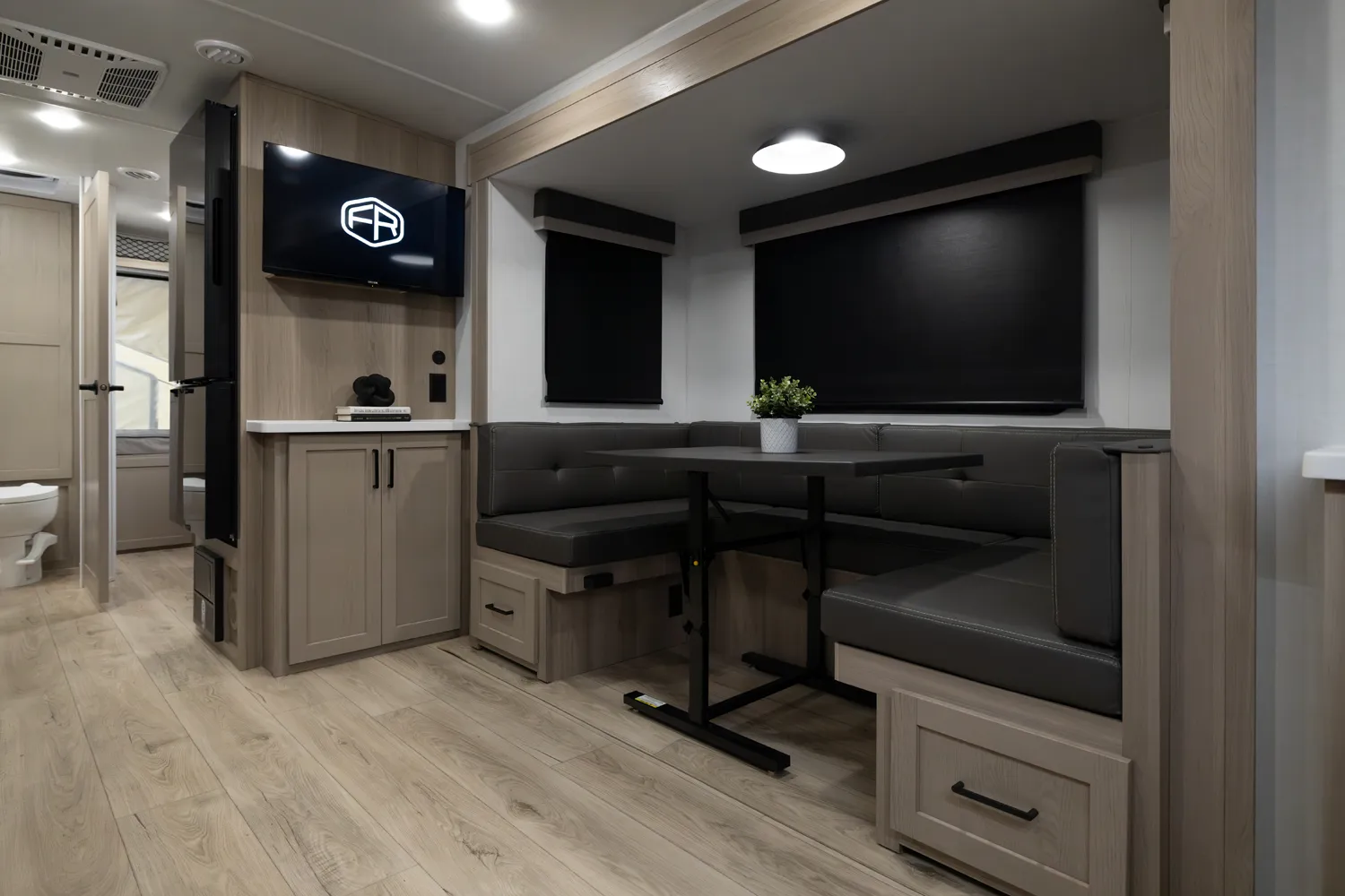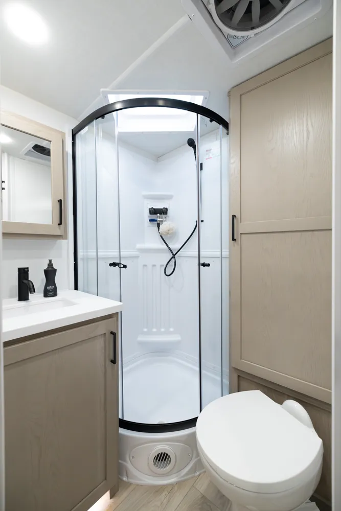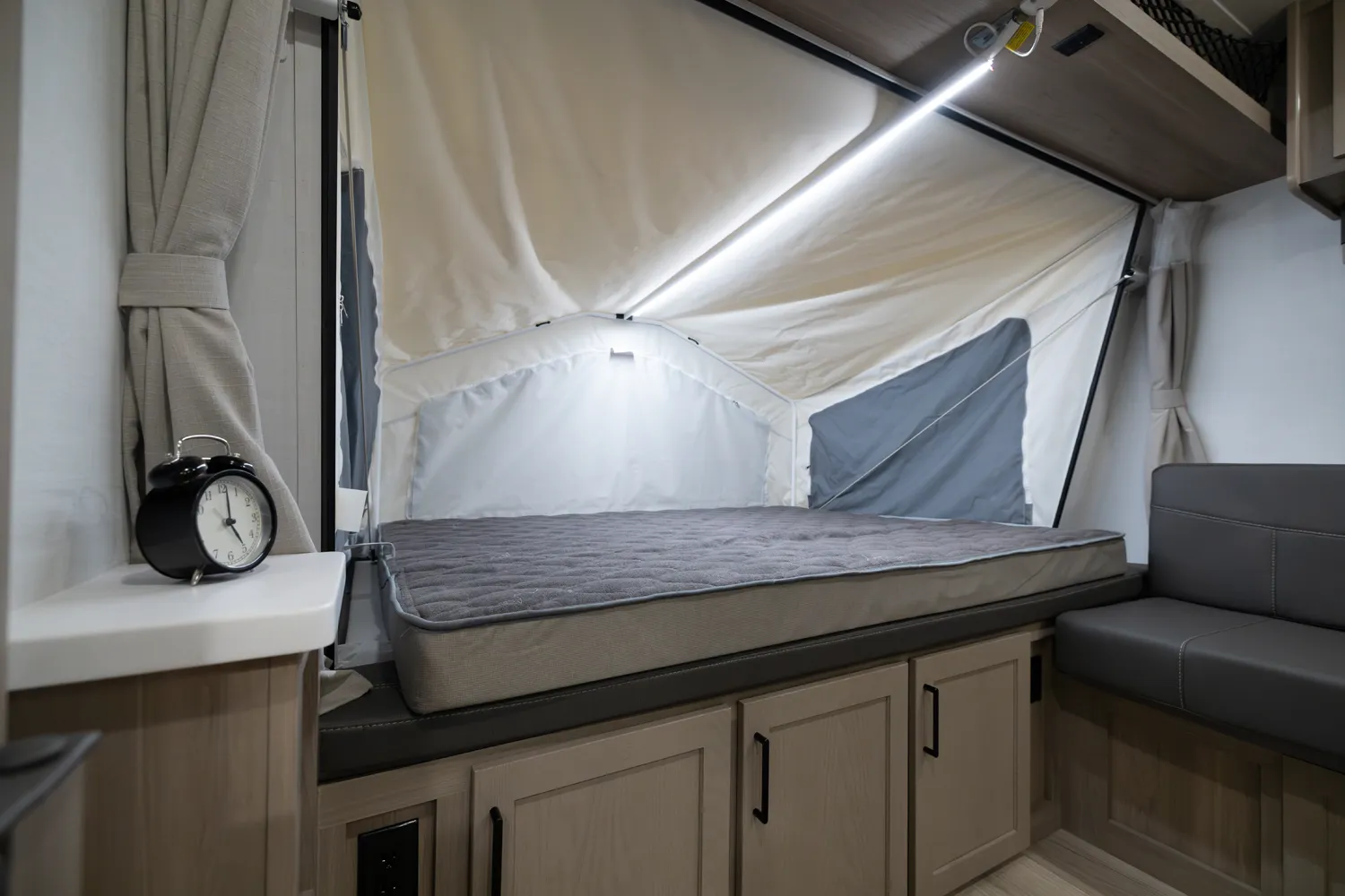 This incredibly popular floor plan has three bed expendables and one slide out featuring a large U-Shaped Dinette. All three expandable beds are residential Queen 60 x 80 beds. There is also sleeping on the 44 x 85 U-Shaped dinette and on the 67” flip out sofa. With the potential to sleep 10 people in a coach that weighs just over 5,000lb, this is a truly unique floor plan.