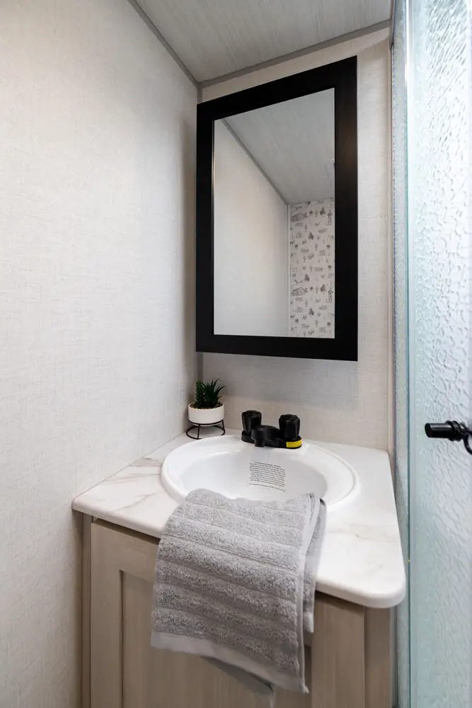 The NB19.6 is a well-designed travel trailer combining comfort and functionality. A mid-living slide-out sofa faces a fully equipped kitchen, while a front queen bed with storage and a rear full bath add convenience. Outside, an exterior kitchen and 16' awning extend living space for outdoor enjoyment. Lightweight and feature-packed, the NB19.6 delivers modern comfort and efficiency in a tow-friendly package.
