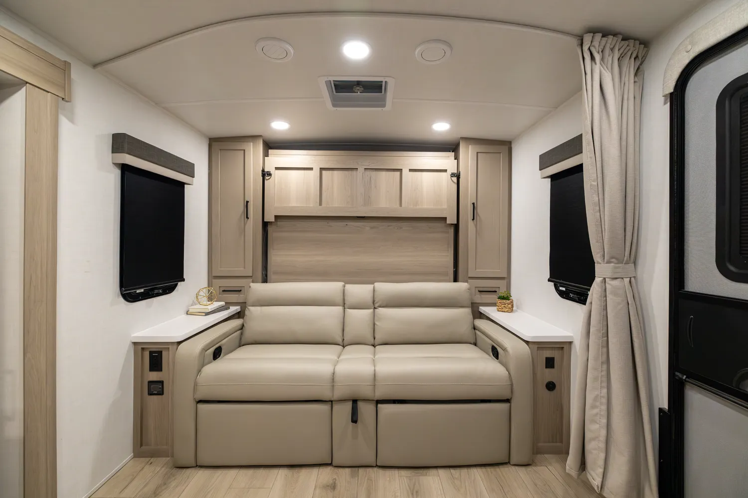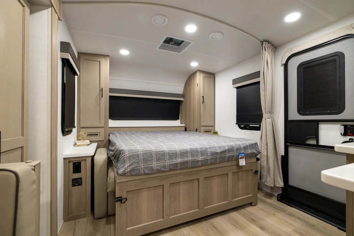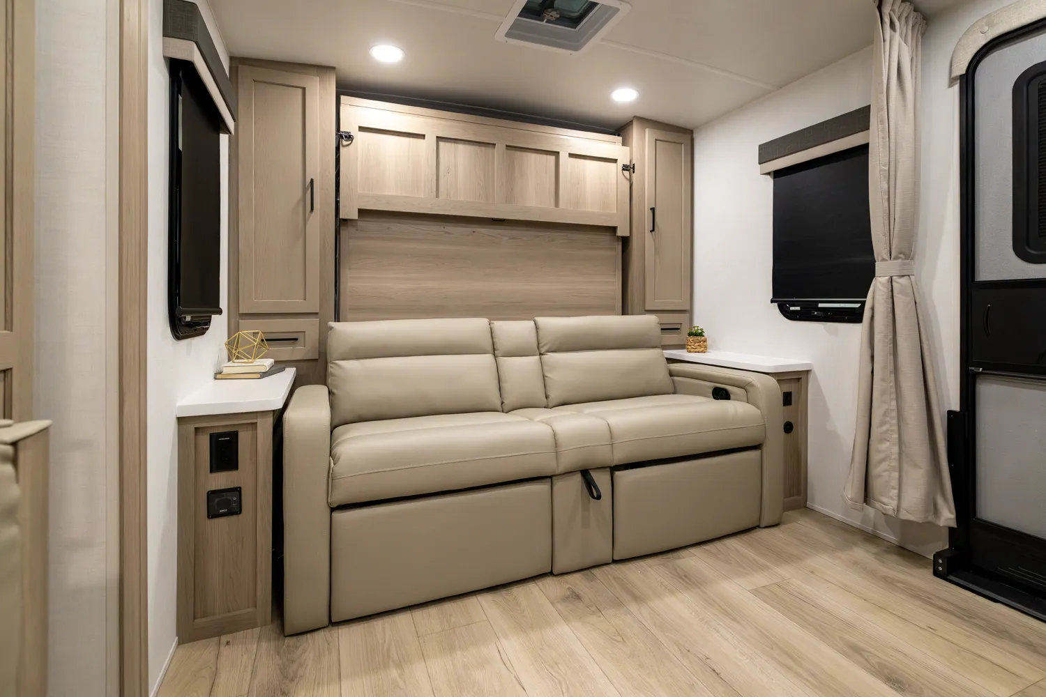 The 2214S delivers a smart, comfortable layout with a front Murphy bed that maximizes living space by day and provides a restful sleep at night. The U-shaped dinette offers plenty of room for meals, games, or extra sleeping space when needed. A large rear bathroom with a rectangular shower adds everyday comfort and convenience making this floor plan a great choice for couples or small families who want big features in a compact trailer.