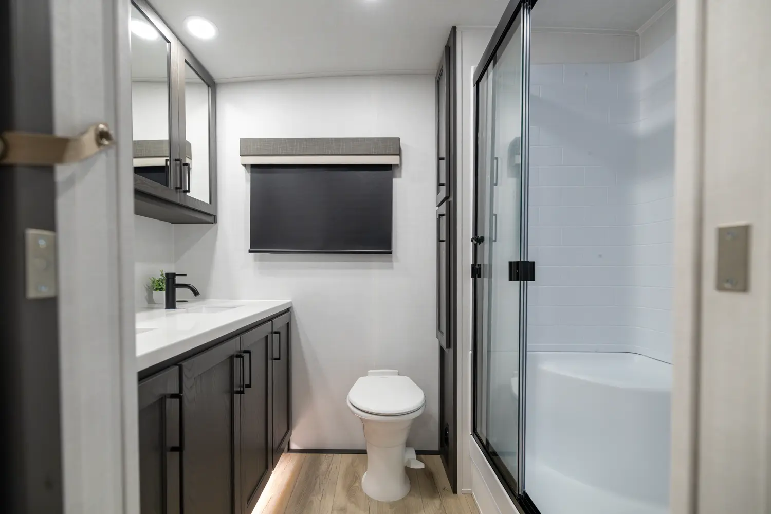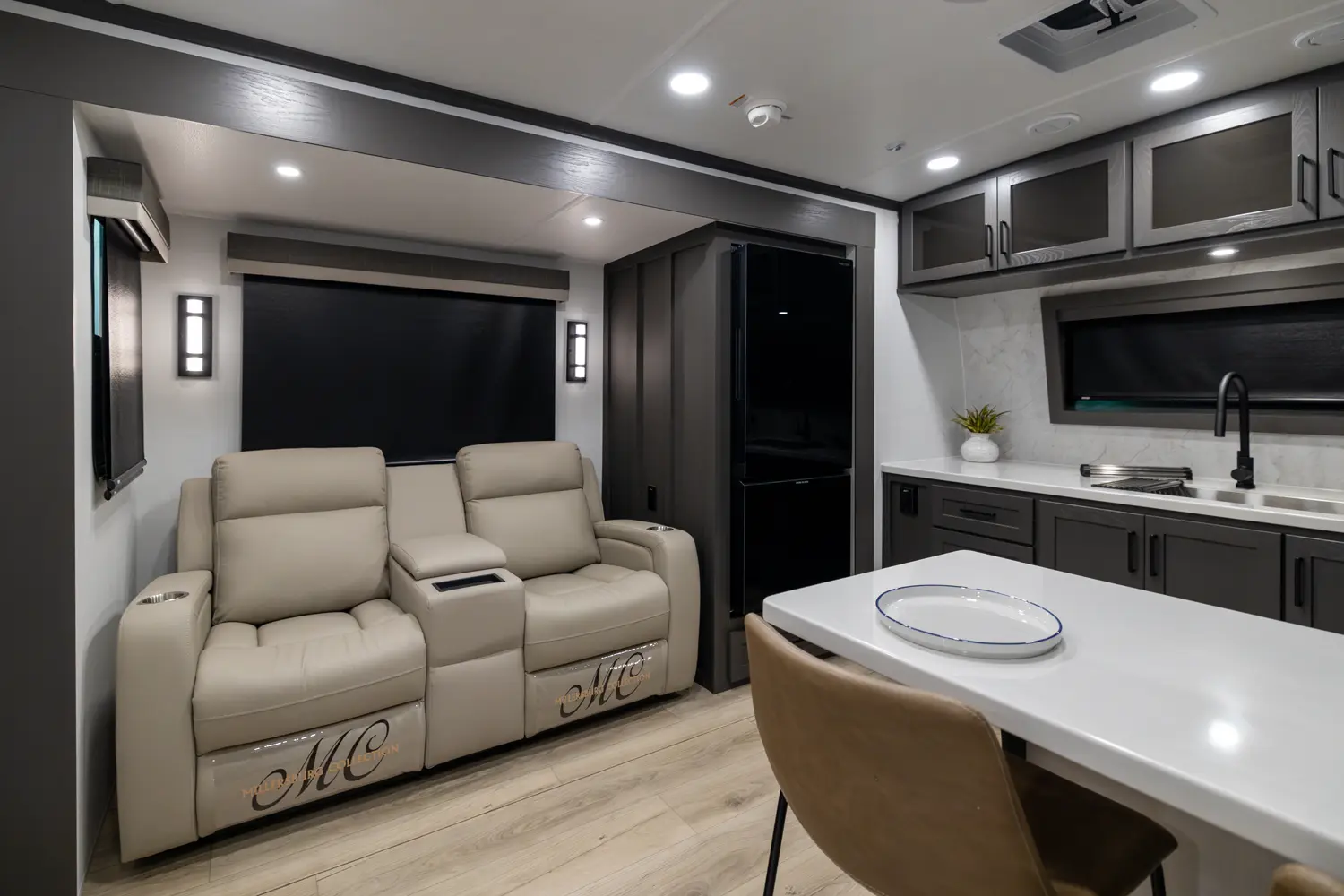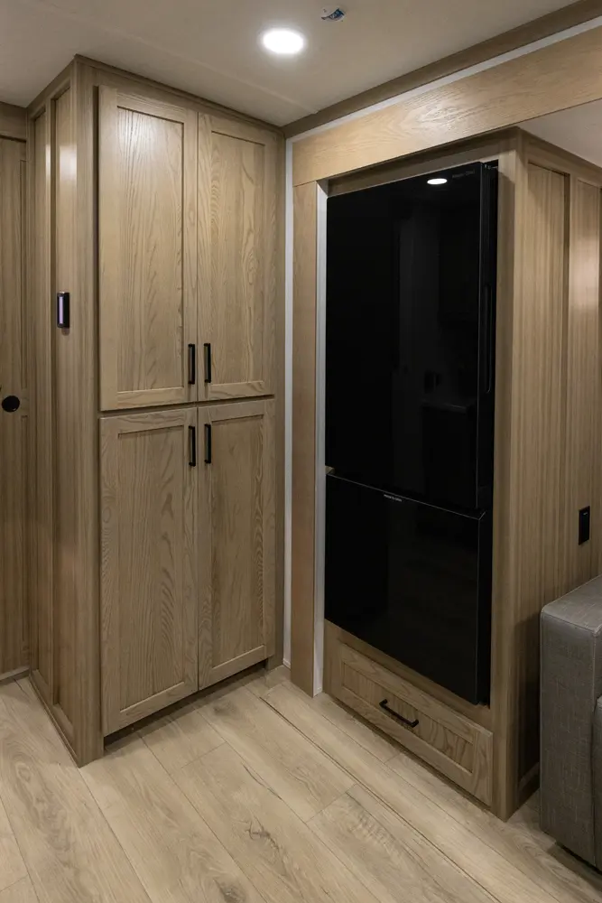 EXQUISITE, EXPANSIVE INTERIORS AS THE NORM. WELCOME TO THE SIGNATURE SERIES, REDEFINING THE CAMPING EXPERIENCE THROUGH AN ARRAY OF REMARKABLE FEATURES. With its inviting open floorplans and ample storage capacity, there's room for those cherished guests or family you wish to bring along. As you nestle into the embrace of a plush king or queen sized bed, the restlessness of your adventures fade away. Through its efficient layout and panoramic windows, the Signature travel trailers offer you an opportunity to luxuriate in your surroundings, all while enjoying the comfort of your serene interior.