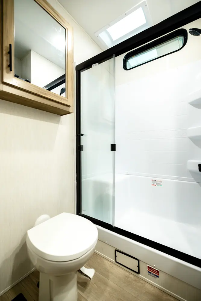 • Blackout Glass, Safety Slam, Friction Hinge Entry Door with Window and Shade Prep (N/A on LP models)