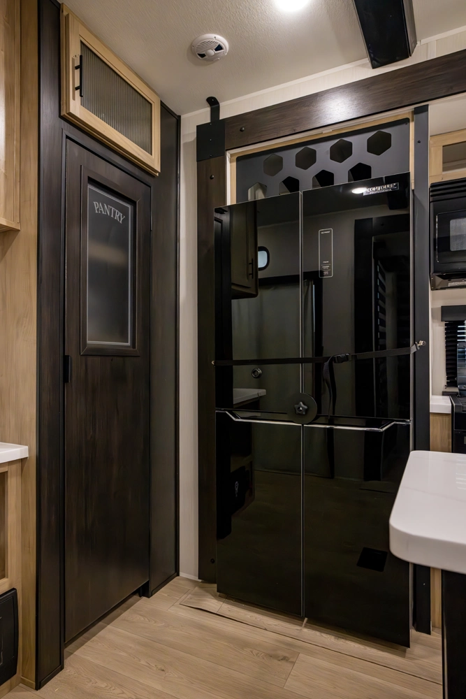 • Blackout Glass, Safety Slam, Friction Hinge Entry Door with Window and Shade Prep (N/A on LP models)