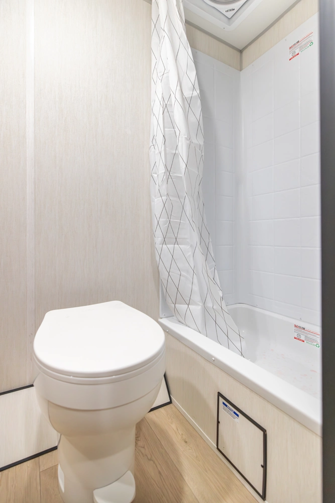 • Blackout Glass, Safety Slam, Friction Hinge Entry Door with Window and Shade Prep (N/A on LP models)