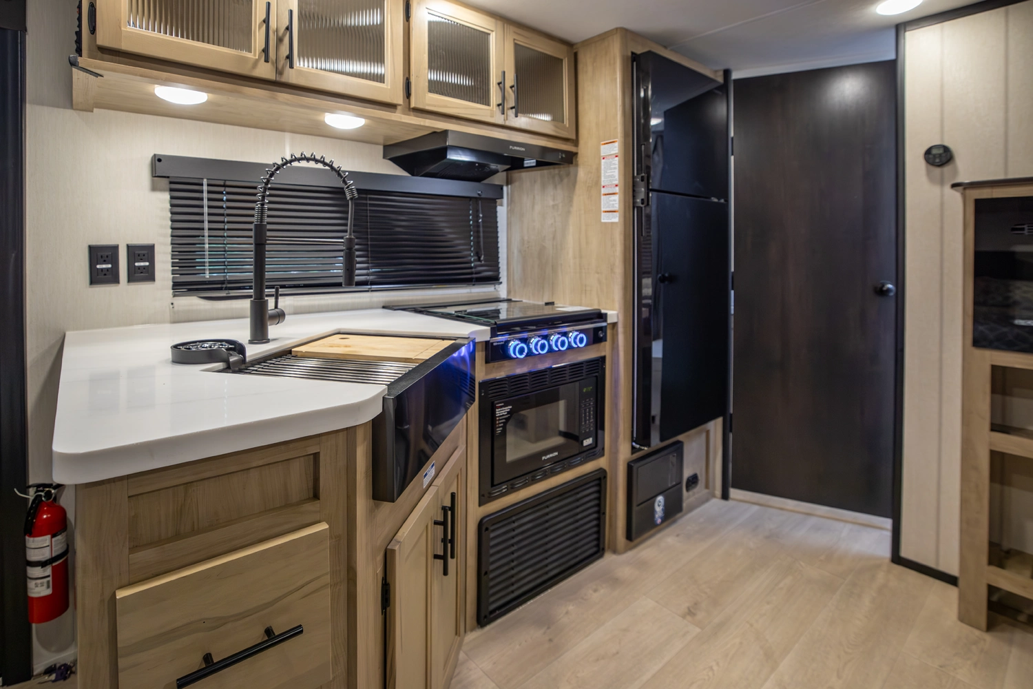 • Blackout Glass, Safety Slam, Friction Hinge Entry Door with Window and Shade Prep (N/A on LP models)