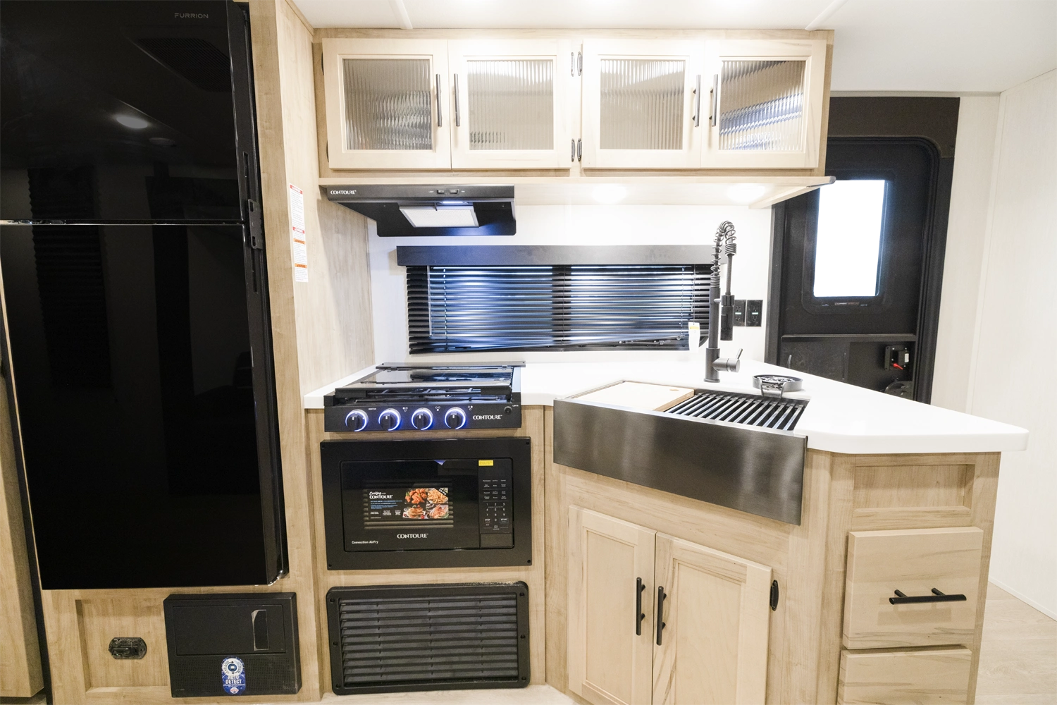 • Blackout Glass, Safety Slam, Friction Hinge Entry Door with Window and Shade Prep (N/A on LP models)