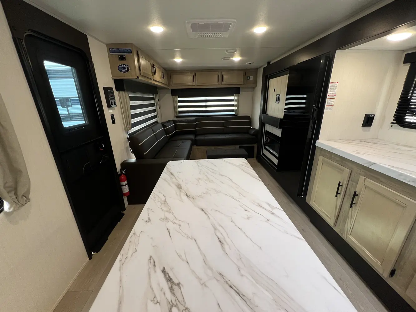 • Blackout Glass, Safety Slam, Friction Hinge Entry Door with Window and Shade Prep (N/A on LP models)