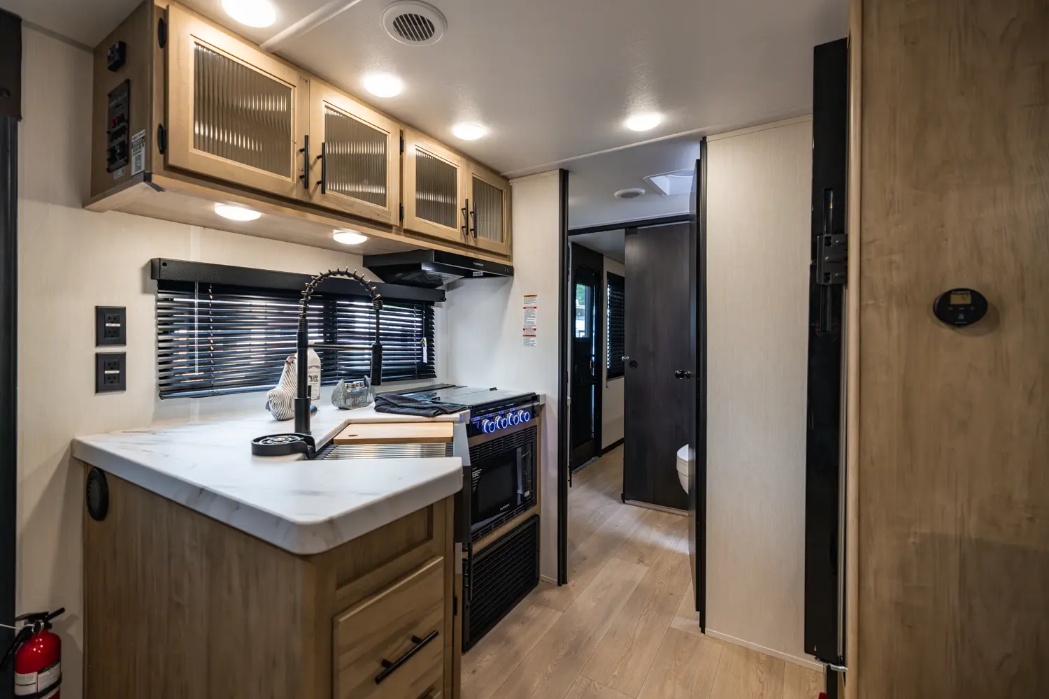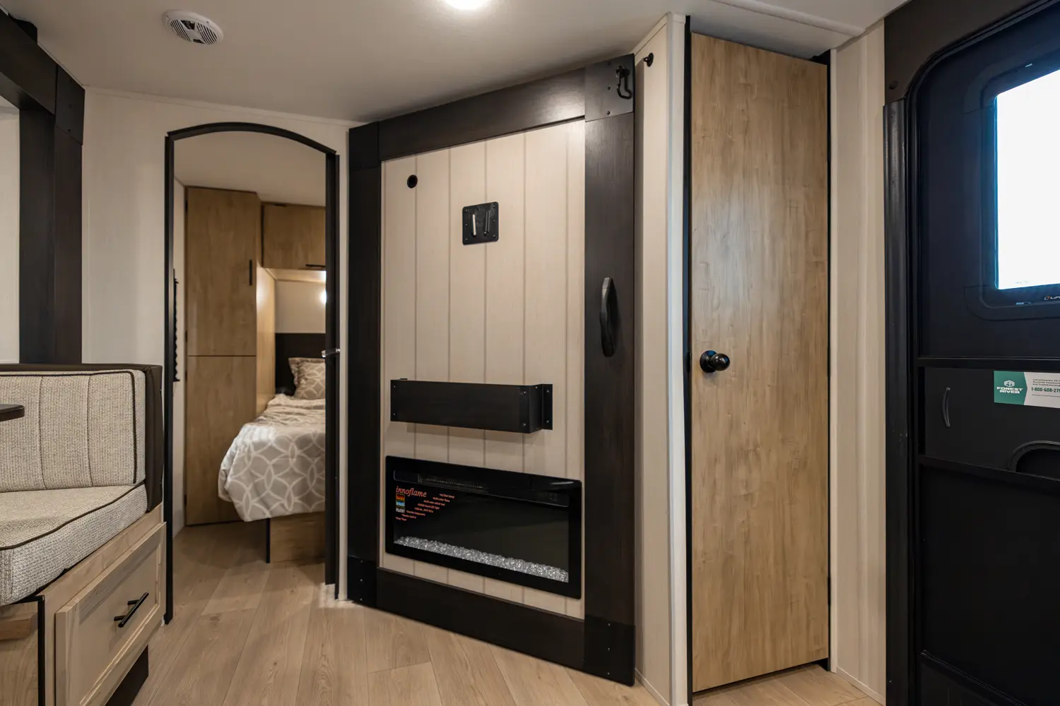 • Blackout Glass, Safety Slam, Friction Hinge Entry Door with Window and Shade Prep (N/A on LP models)