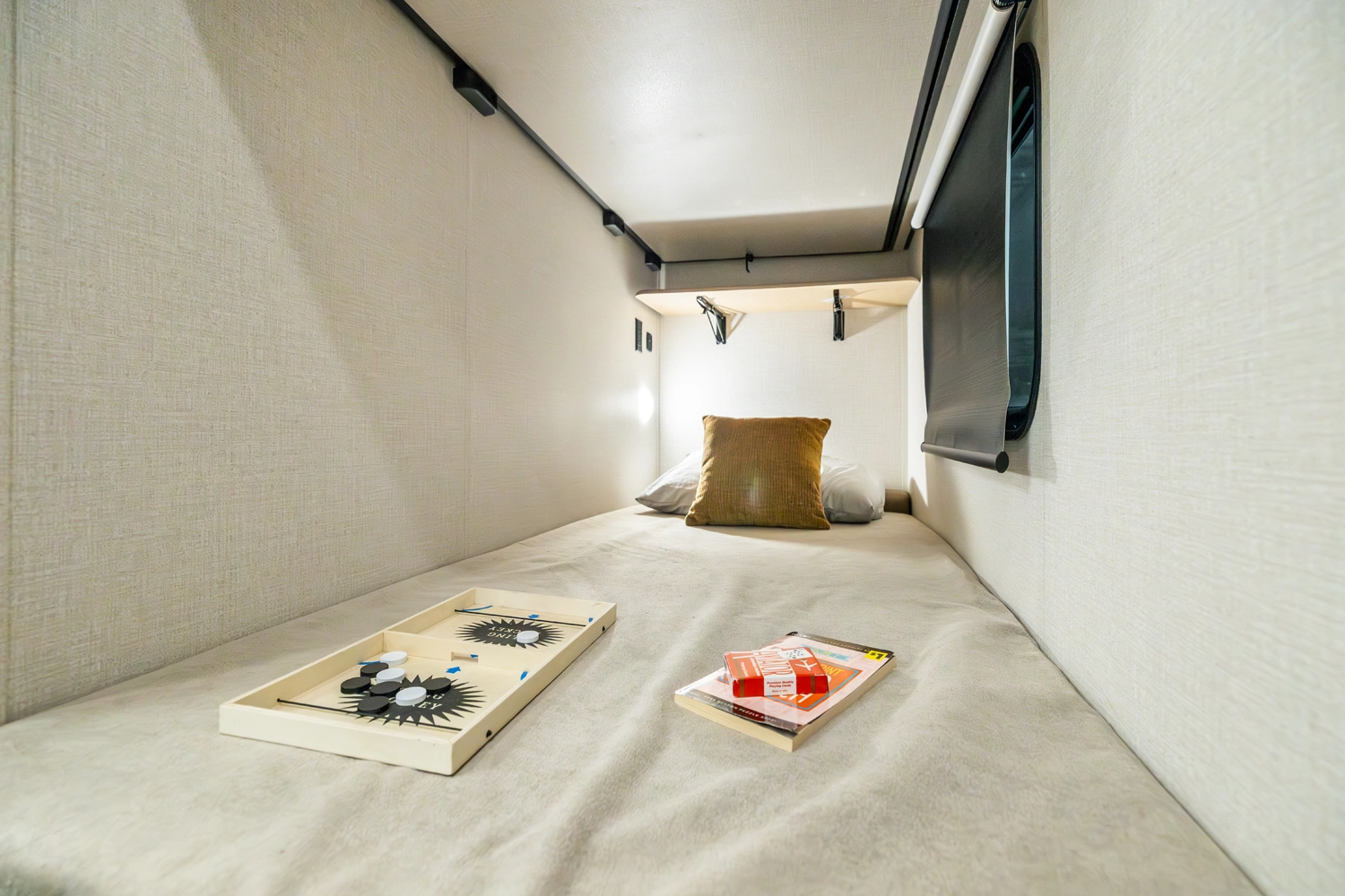• 110 Outlet & 12V Charging Ports Beside Bed