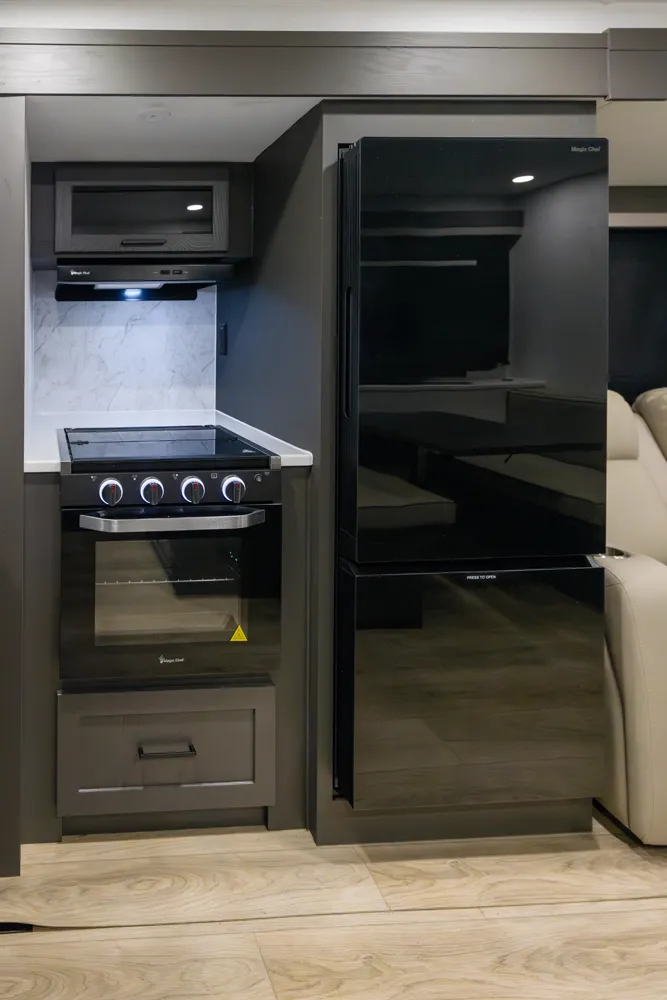 • Platinum Package: Auto Leveling, Frameless Windows, 1800W Inverter, MORryde Strut Assist Entry Step, Dual 30 LP Tanks