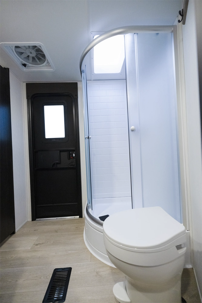 • Blackout Glass, Safety Slam, Friction Hinge Entry Door with Window and Shade Prep (N/A on LP models)